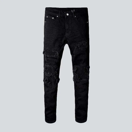 Vintage black men's patch jeans