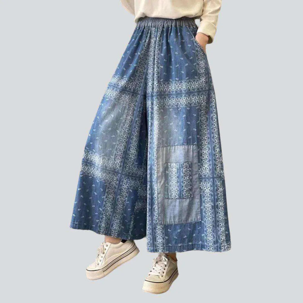 Ornament print culottes denim pants | Jeans4you.shop