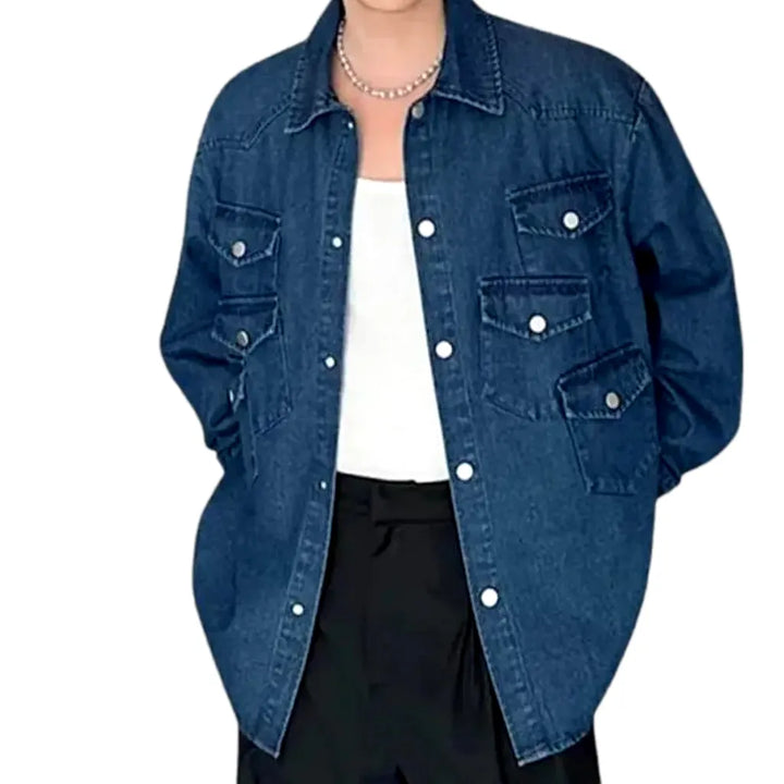 Introducing our men's denim jacket, a quintessential addition to any fashion-forward wardrobe that seamlessly blends contemporary style with everyday functionality.