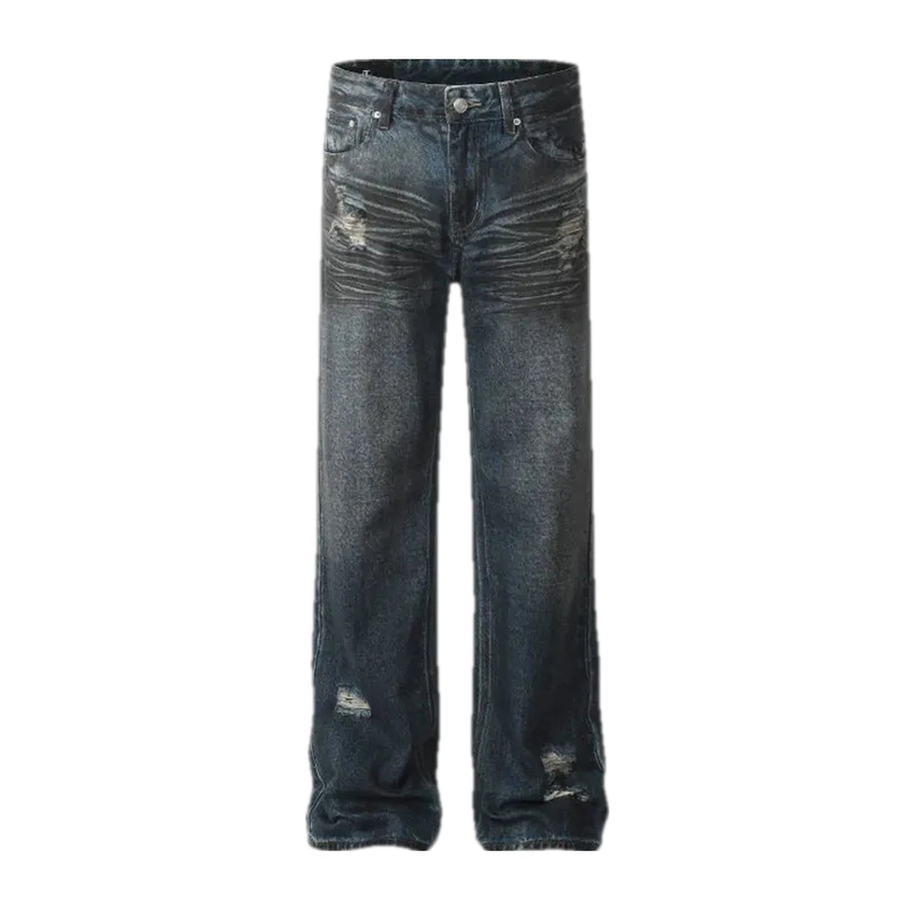 • Distinctive Pattern: Featuring a dark, grinded, ripped, stonewashed, and whiskered aesthetic, these jeans boast a worn look that perfectly captures the essence of grunge style.