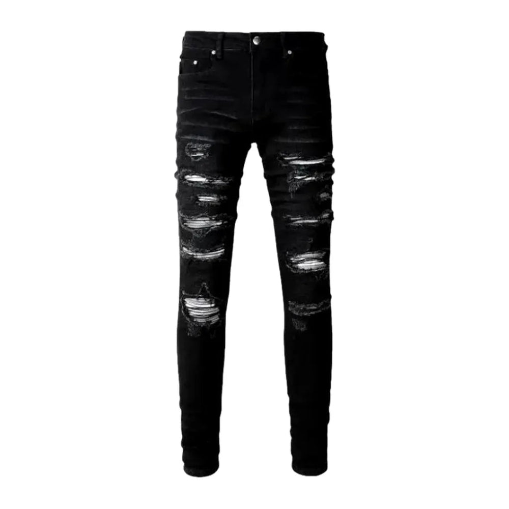 Elevate your style game with this painted black men's jean jacket, perfect for any occasion. Whether you're heading out for a casual day with friends or a special evening out, this jacket is sure to turn heads and make you stand out in a crowd.